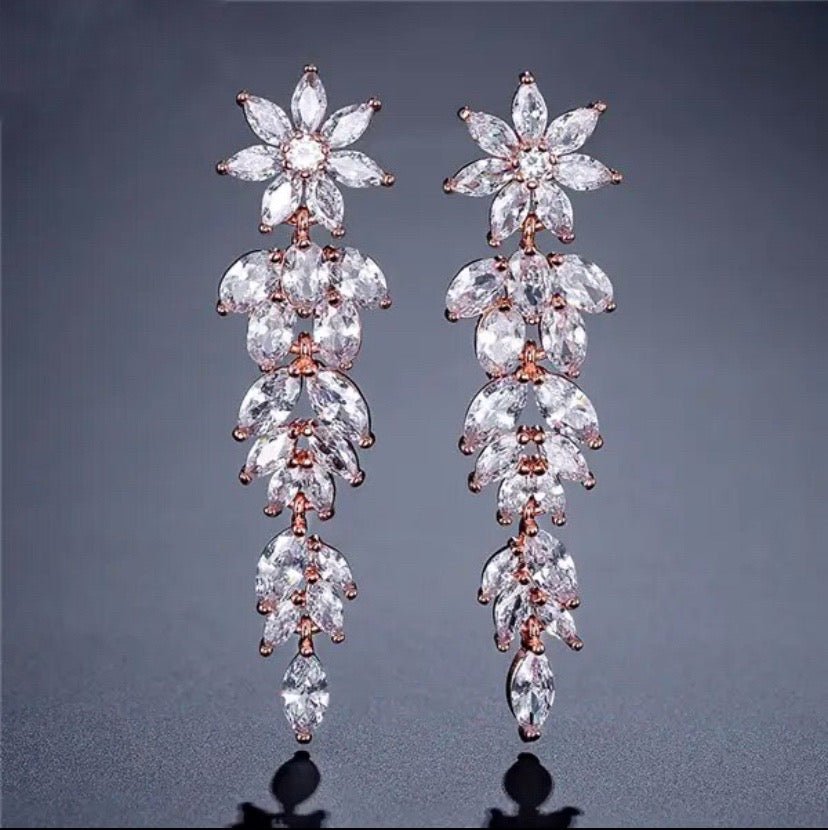CZ Kristall baumelnde Tropfen Ohrringe Braut Ohrringe Blumen Design Geschenk für Sie Hochzeit Ohrringe in Silber und Roségold