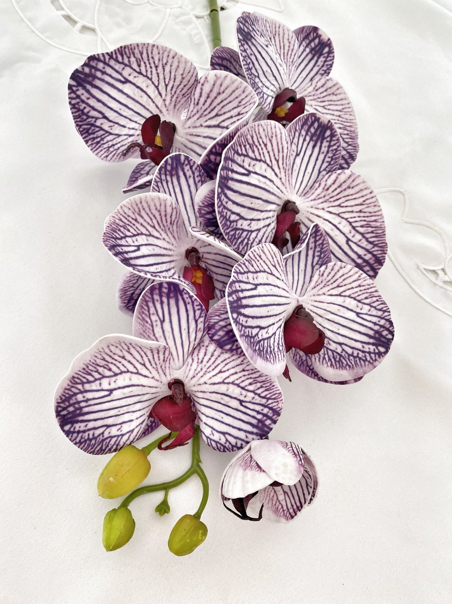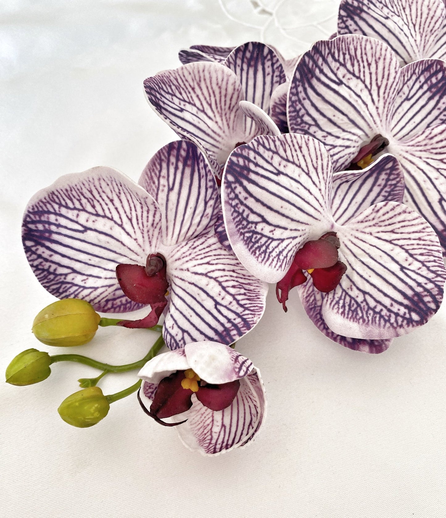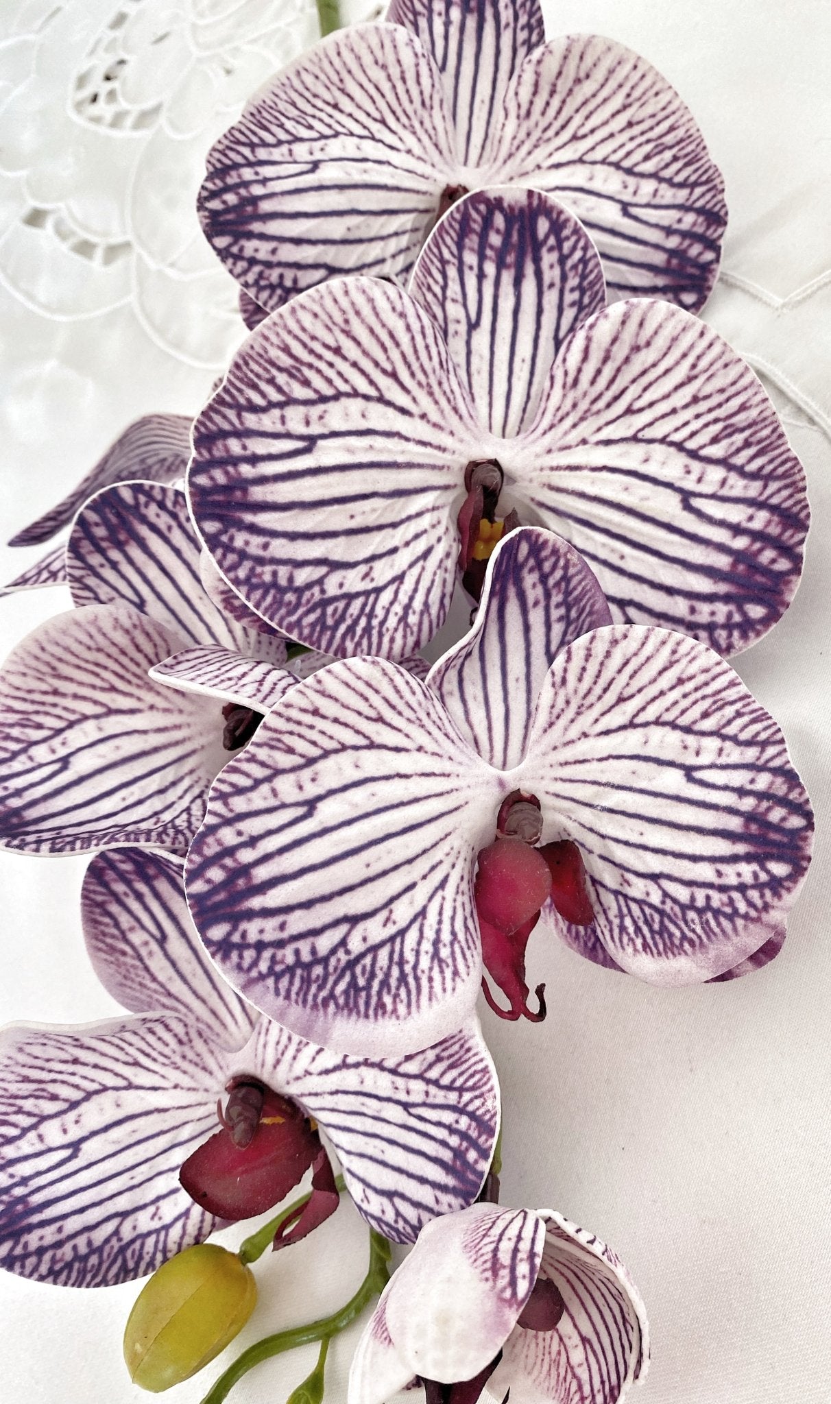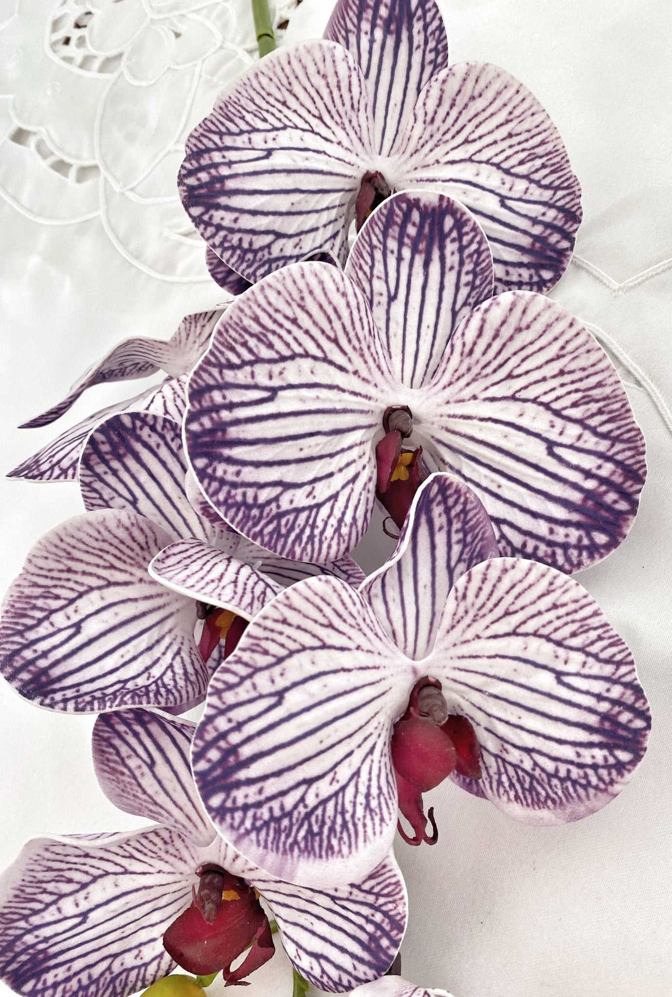 Artificial Orchid Flower, Gift for Her, Real Look Orchids, Purple Striped Orchid Stem, Phalaenopsis, Faux Orchid Flower