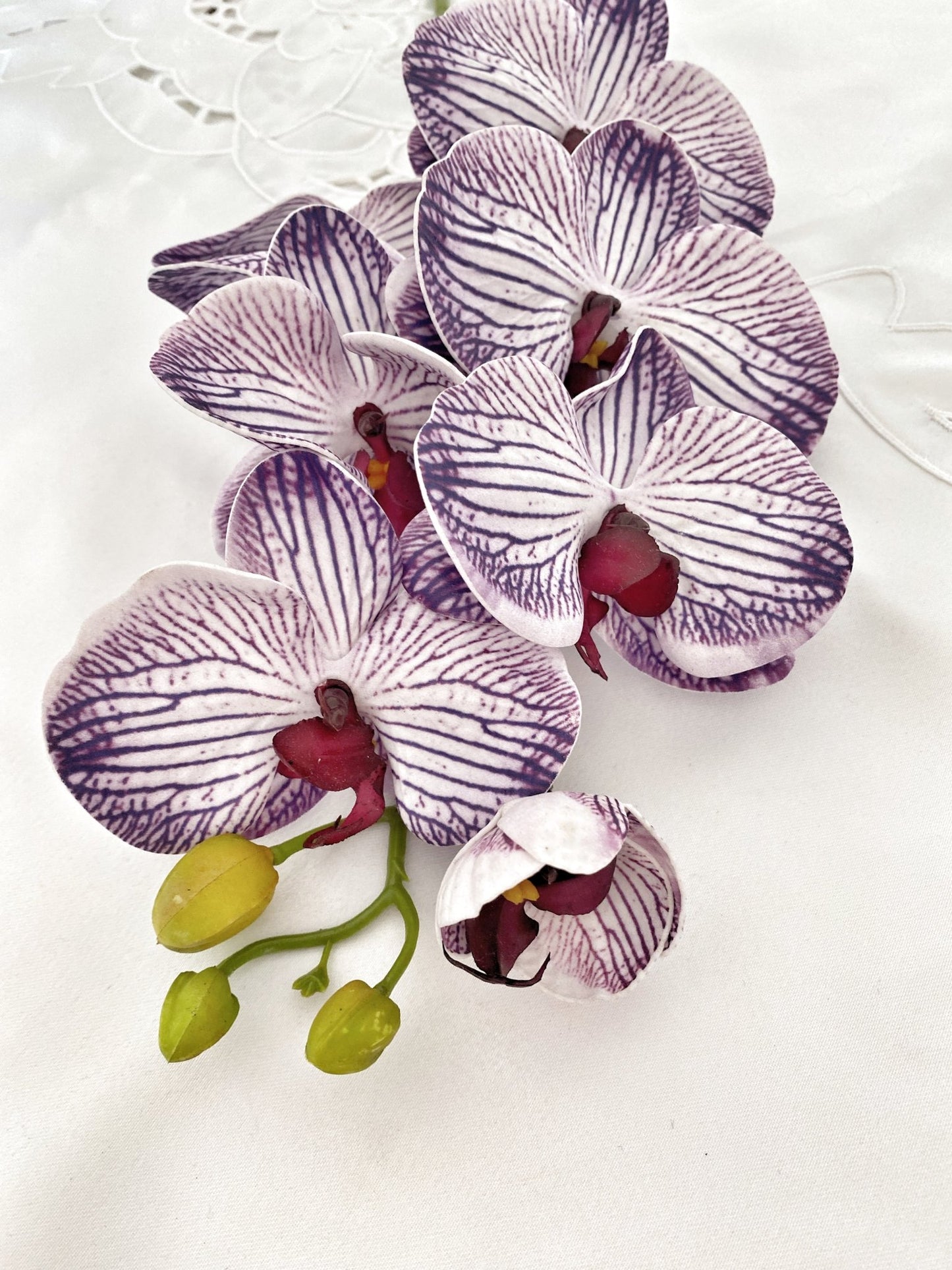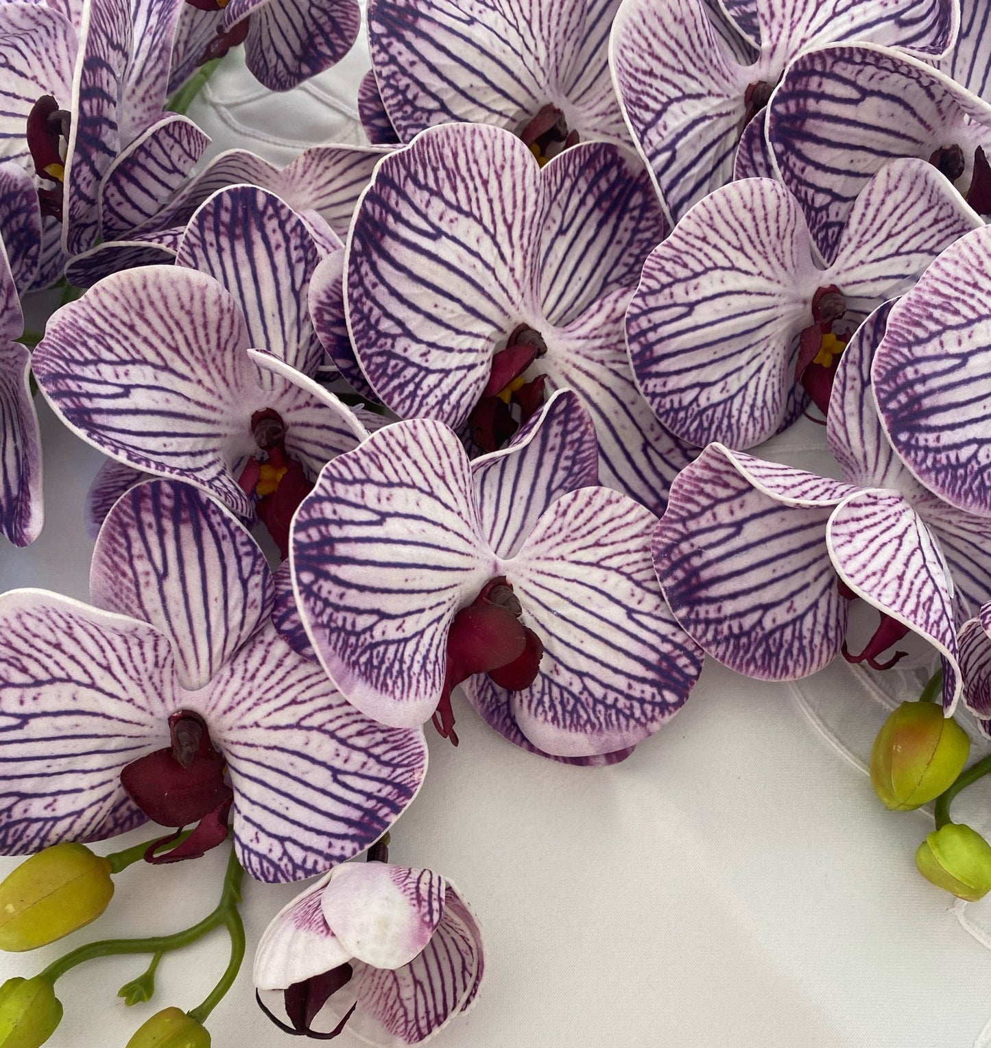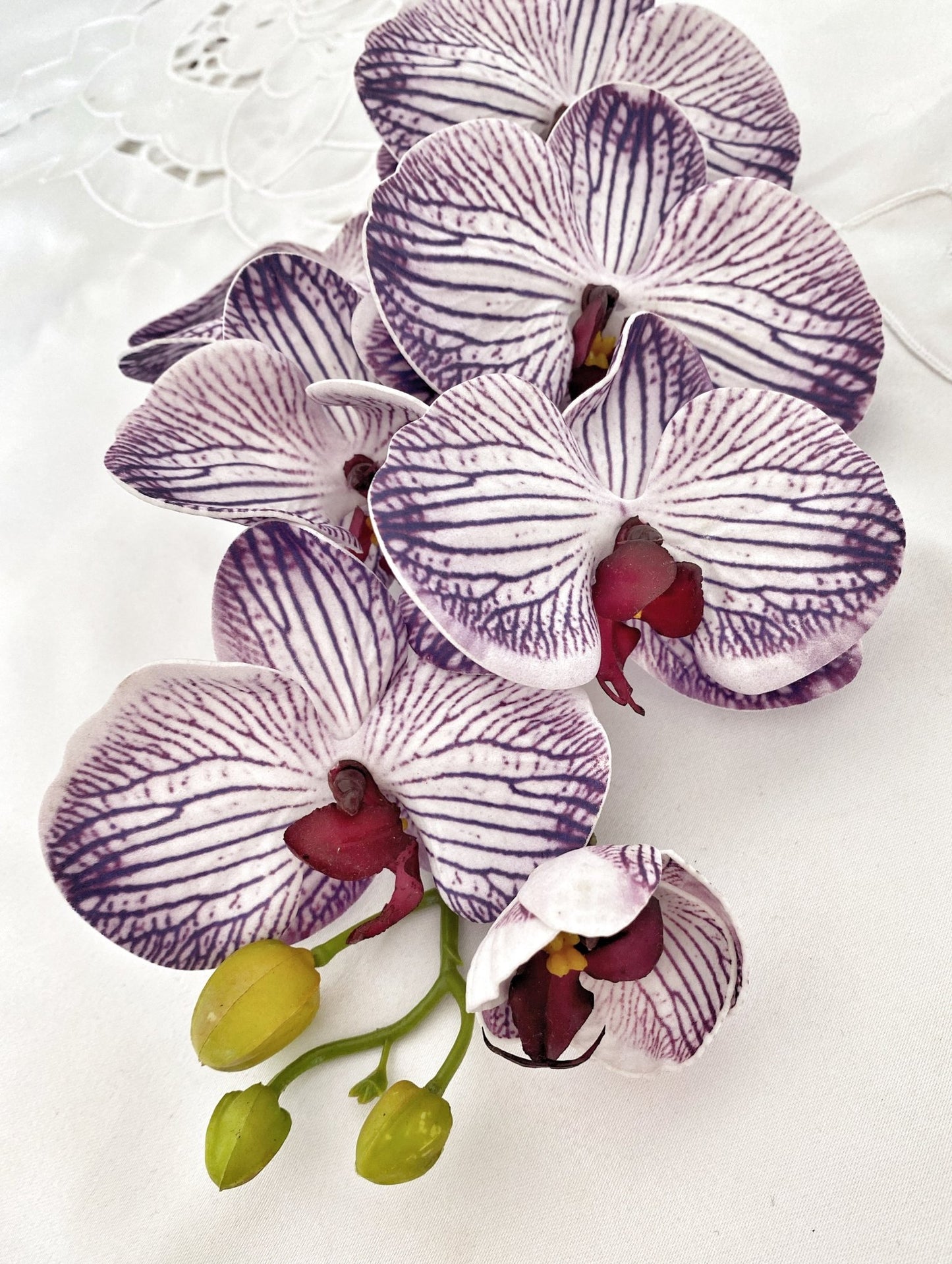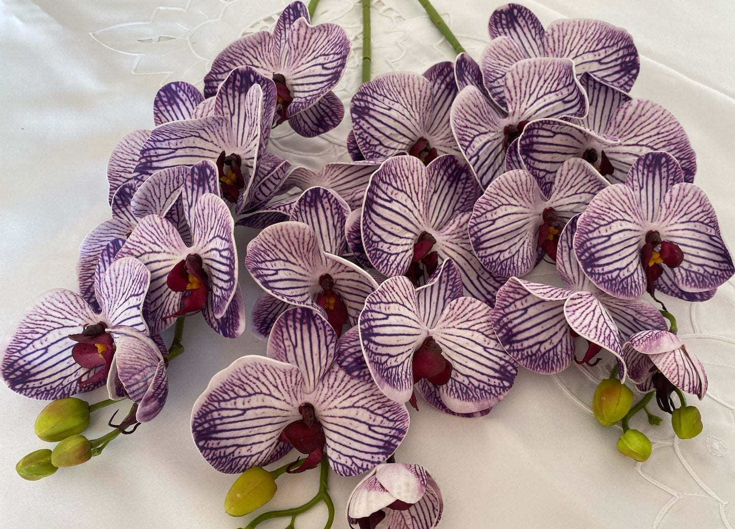 Artificial Orchid Flower, Gift for Her, Real Look Orchids, Purple Striped Orchid Stem, Phalaenopsis, Faux Orchid Flower